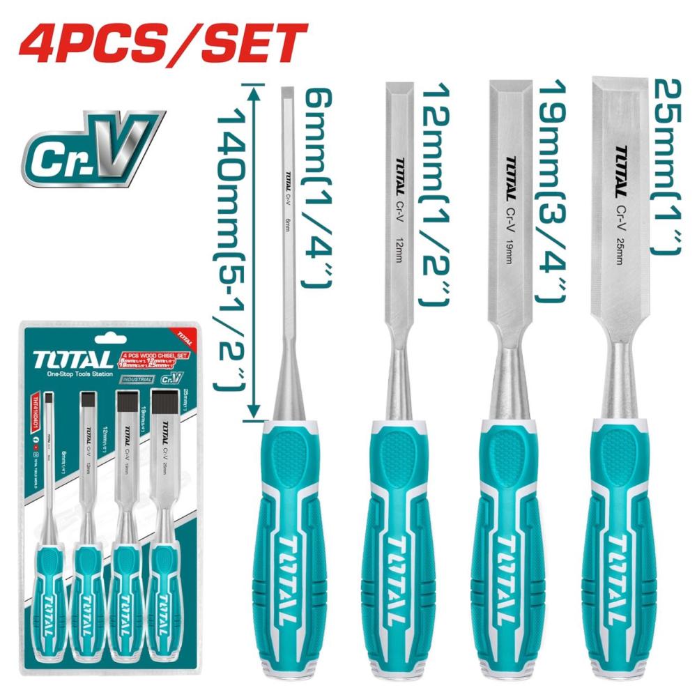 🪵 توتال – طقم أزميل خشب 4 قطع | موديل 0401 | دقة في النحت وتشطيب احترافي