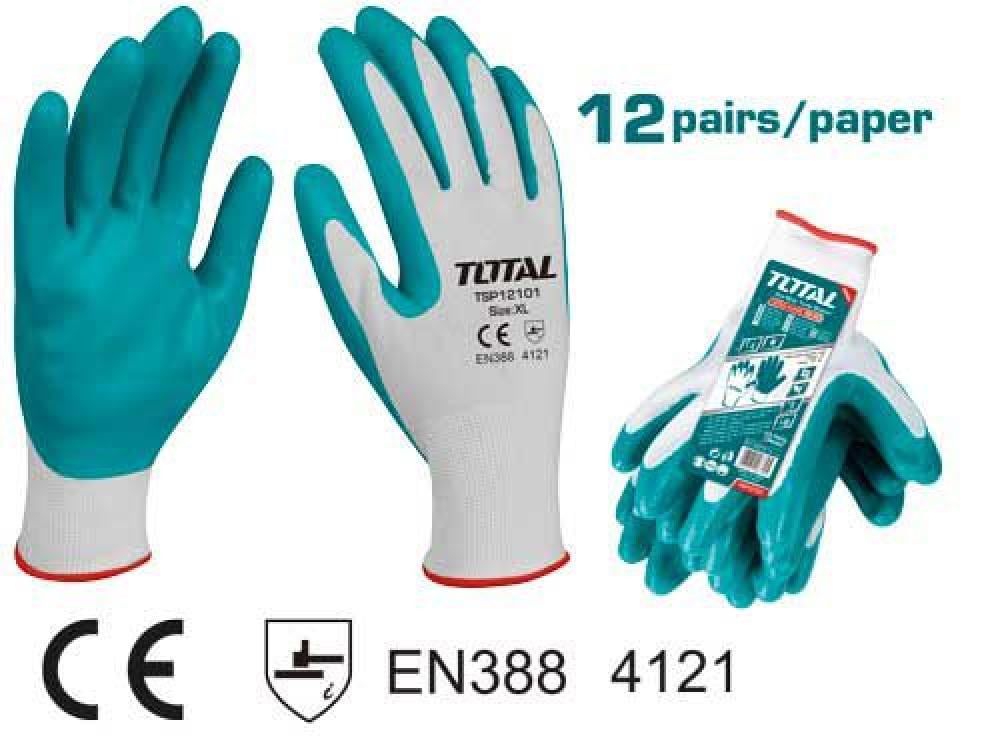 كفوف عمل عالية الجودة من توتال، تُستخدم لحماية اليدين أثناء أداء مختلف الأعمال الصناعية، المنزلية، والورش. تأتي هذه الكفوف في عبوة تحتوي على 12 زوجًا (درزن) لتوفير حماية متكاملة وراحة أثناء الاستخدام الطويل.