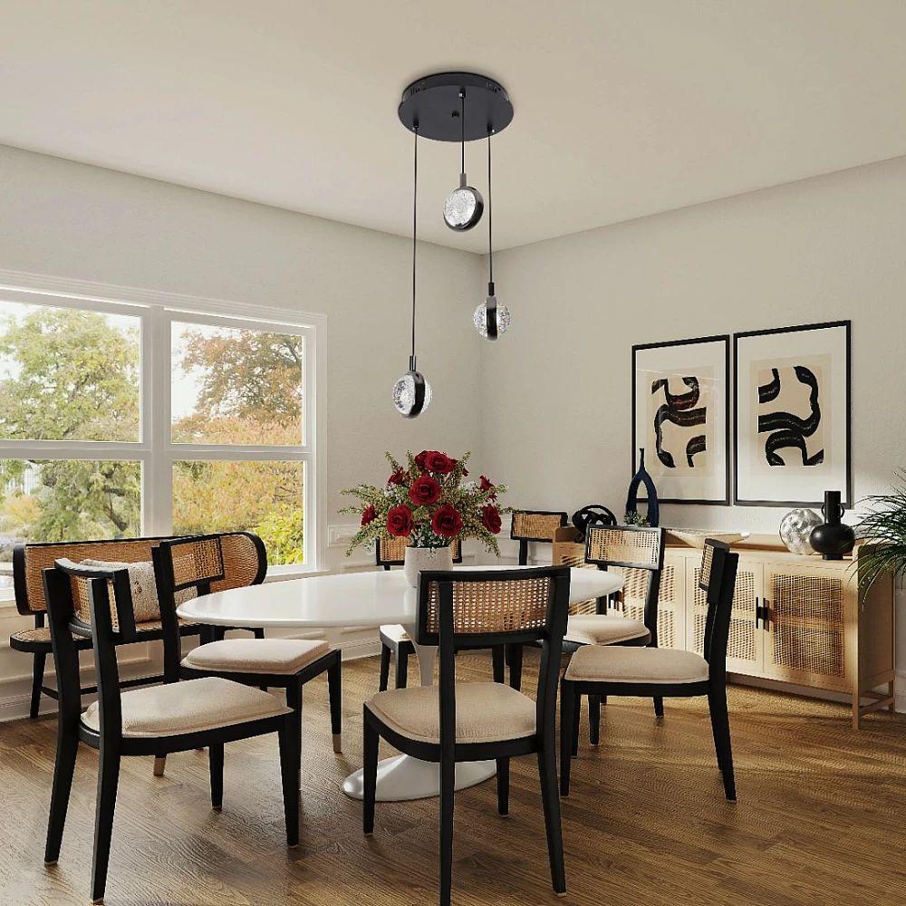 ثريا كريستال أنيقة تأتي بشكل كرة بلورية متألقة، تجمع بين تصميم عصري مبهر وأناقة كلاسيكية راقية، وتوفر إنارة بثلاثة ألوان قابلة للتغيير حسب الرغبة. تضفي الثريا لمسة فاخرة على أي مساحة داخلية بفضل تصميمها الفريد وتوهجها المتعدد.