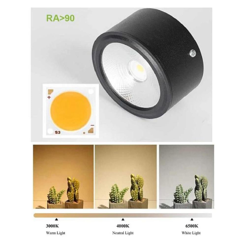 سلندر كوب 4 بوصة — 15 وات — إطار أسود — ألوان إضاءة أبيض، أصفر، شمسي