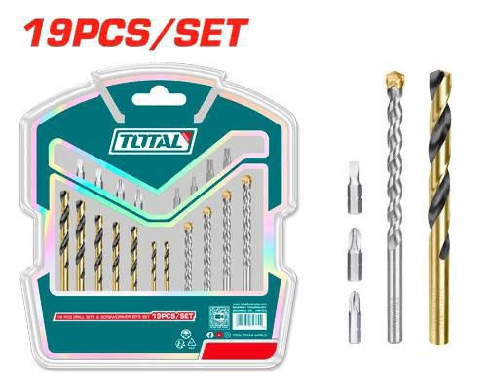 احصل على طقم ريش توتال المكون من 19 قطعة لتلبية جميع احتياجاتك! يتميز هذا الطقم بتصميم متين وأداء ممتاز، مما يجعله الخيار المثالي لكل من المحترفين والهواة.