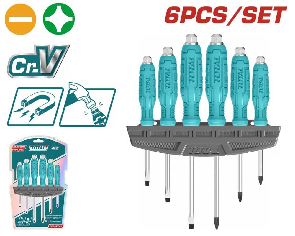 اكتشف طقم مفك توتال المكون من 6 قطع، المصمم خصيصًا لتلبية احتياجاتك في الأعمال الدقيقة. يتميز هذا الطقم بجودة عالية، حيث تم تصنيعه من فولاذ Cr-V، مما يوفر قوة ومتانة استثنائية، مما يجعله الخيار الأمثل لكل من المحترفين والهواة.