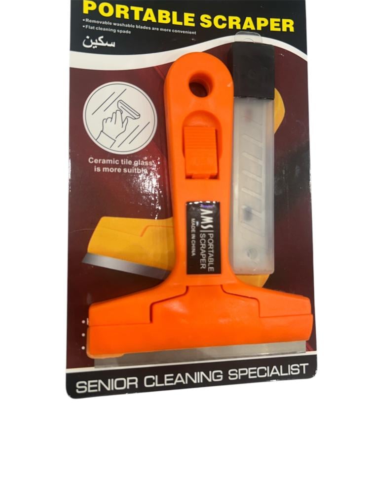 مشرط تنظيف زجاج/سكين طاولة مع غيار – صناعة صينية – هو أداة عملية ومناسبة لمجموعة متنوعة من أعمال التنظيف والصيانة. يُستخدم بشكل أساسي لإزالة الأوساخ، البقع، والدهون الملتصقة على الأسطح الزجاجية، السيراميك، أو الطاولات المعدنية والخشبية، مما يجعله أداة فعالة في التنظيف العميق.